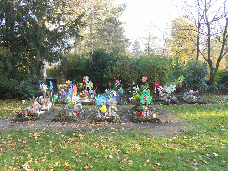 Wenn Sie die Bestattung Ihres Kindes nicht selbst veranlassen möchten, wird es auf dem Gräberfeld auf dem Düsseldorfer Nordfriedhof bestattet. Dieses Gräberfeld ist durch die Initiative der Ökumenischen Hospizgruppe Gerresheim e. V. entstanden. Unabhängig von Religionszugehörigkeit werden dort die Sternenkinder in einer Sammelbestattung in einem gemeinsamen Sarg beerdigt. Somit ist eine würdevolle Form der Bestattung garantiert, bei der für Sie keine Kosten entstehen. Sie haben damit einen Ort der Trauer und des Gedenkens. Die Pflege des Gräberfeldes wird durch die Düsseldorfer Friedhofsgärtner übernommen. Die individuelle Grabgestaltung ist somit nur beschränkt möglich. Sie haben die Möglichkeit einen selbstgestalteten Kieselstein abzulegen. Die Steine erhalten Sie gegen eine Gebühr unter 0211/439909.